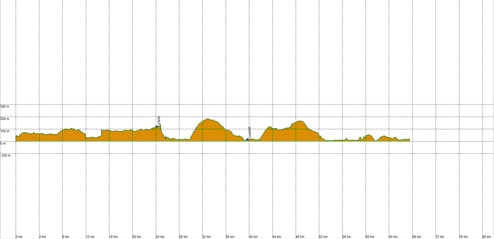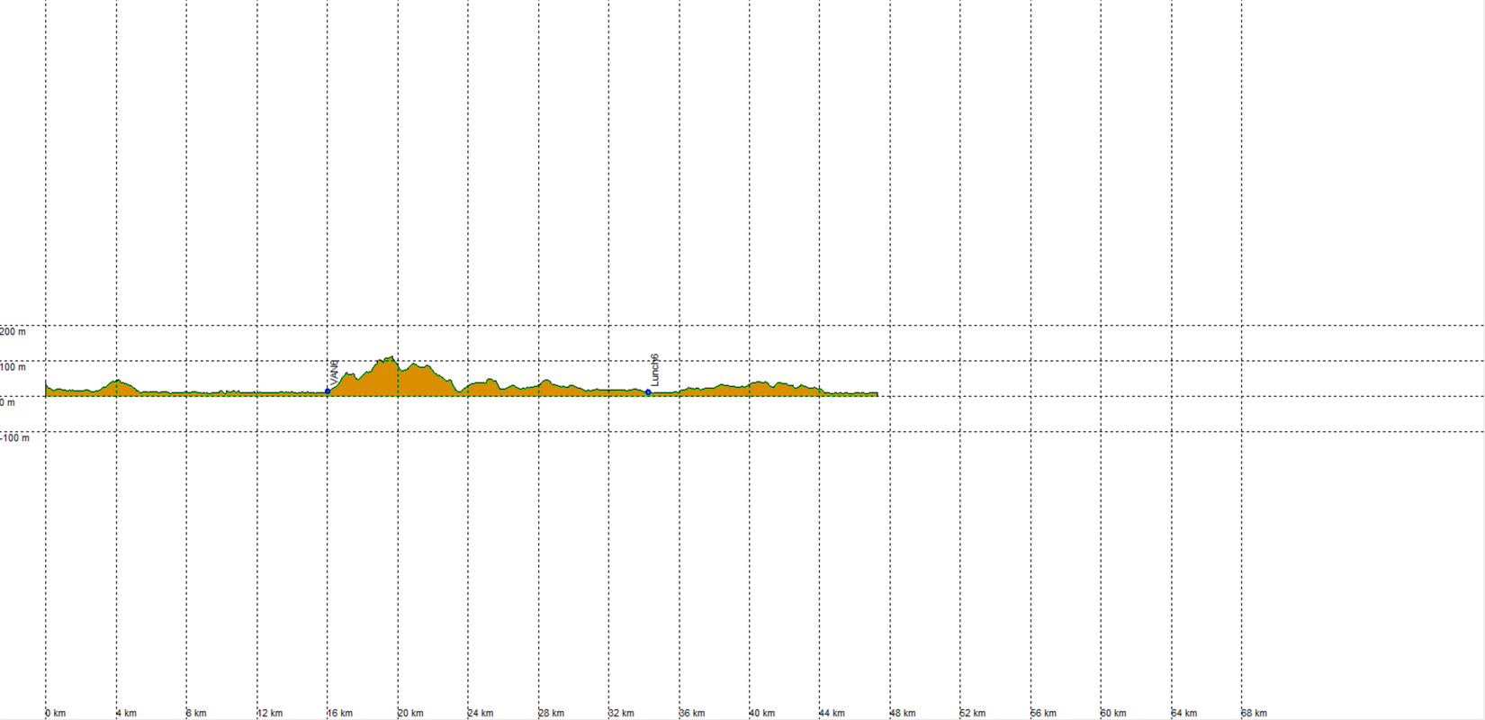 You will split this day between asphalt (52%) and bike paths (48%). Today is predominantly flat.