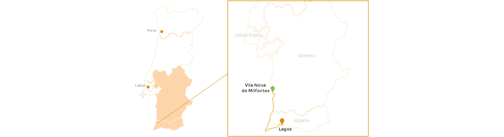 This “cross-country” bicycle tour in Portugal starts in SW Alentejo and Vicentine Coast Natural Park, which extends itself along the Portuguese coast and is bordered by the Atlantic Ocean. This SW landscape is 300 million years old and it is one of the most preserved landscapes all over Europe; human intervention has been less visible throughout its history. Once submerged (about 2 million years ago), this is a vast area with many different coastal habitats and countless beaches and cliffs.