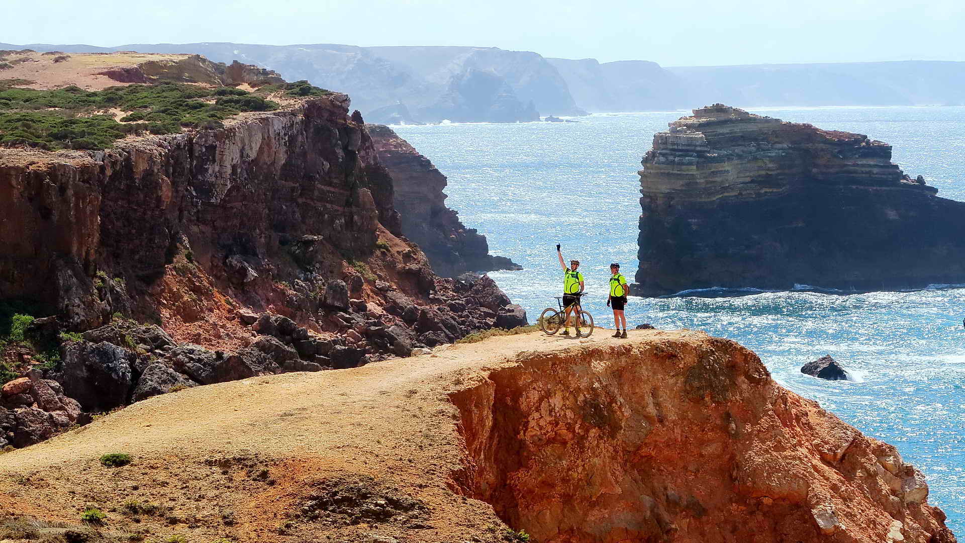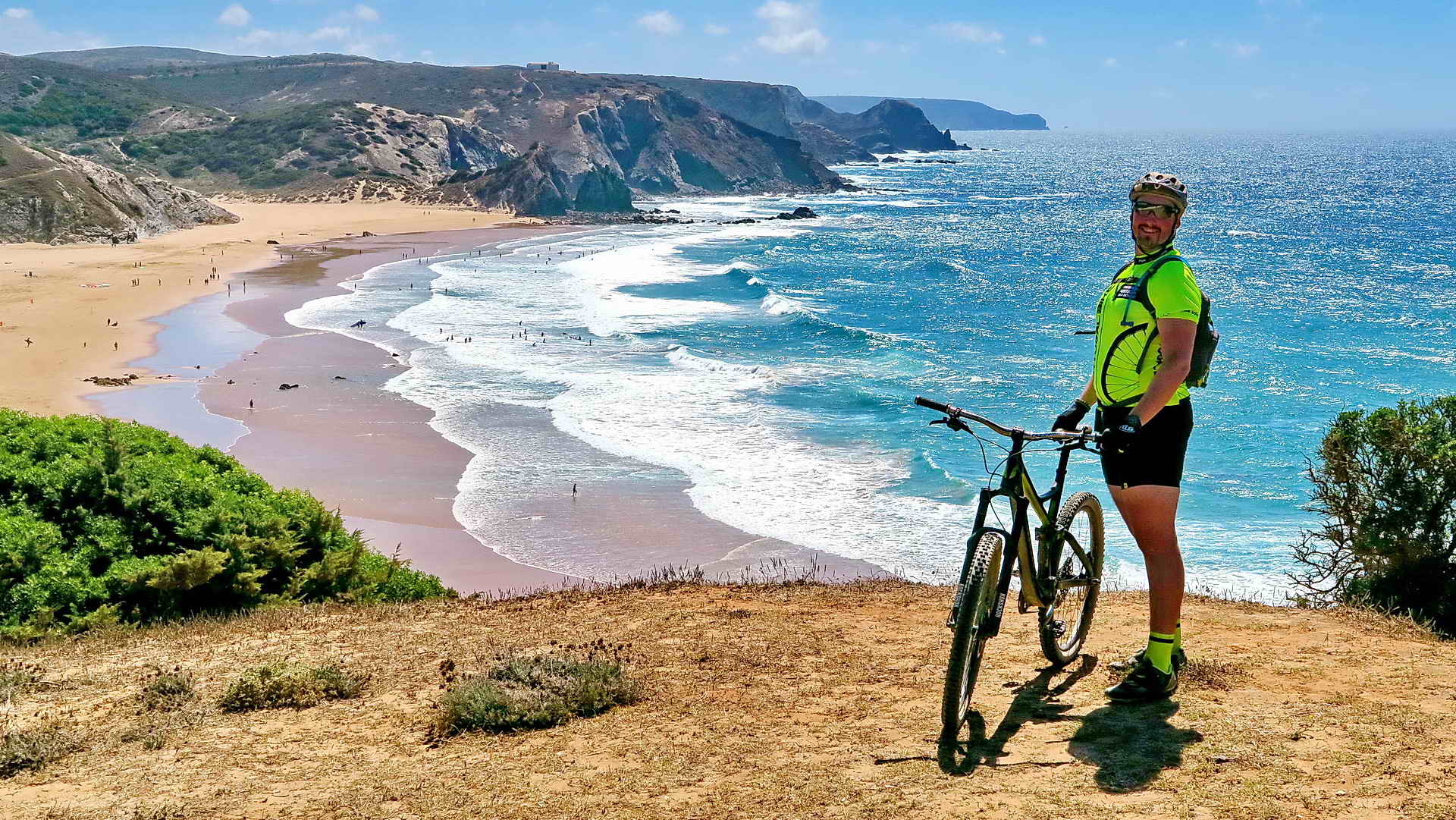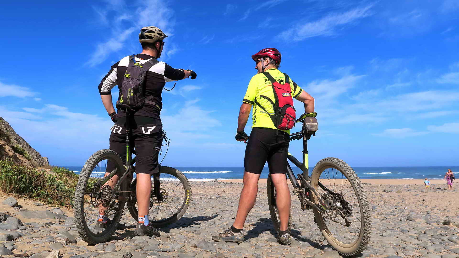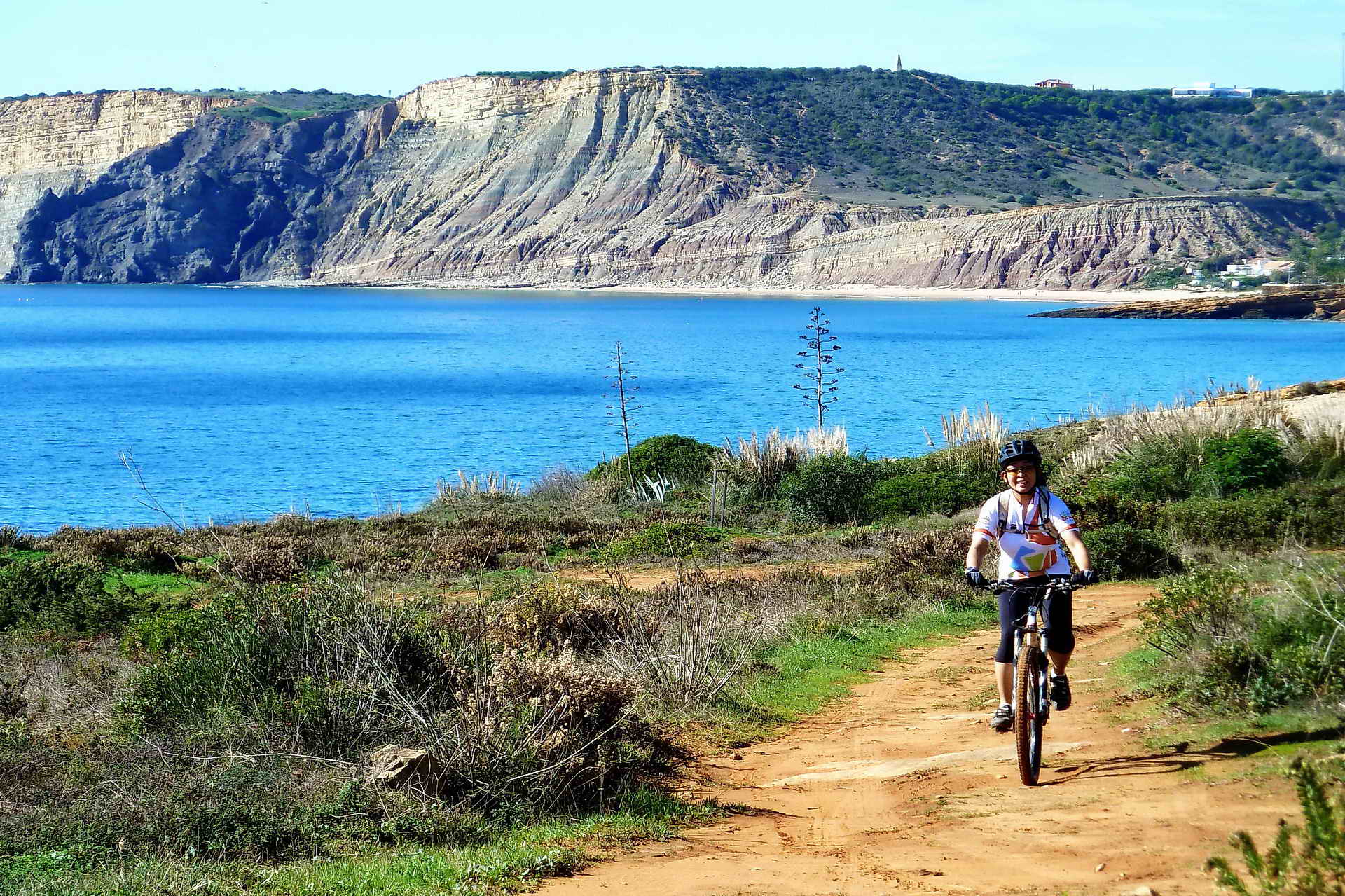 Our daily mountain bike tours include going to the wonderful beaches of this Natural Park and taking a swim in the clear, blue sea. Cliffs are steep, almost 100m high and right above the ocean. Countless rocks and isolated islets complete this beautiful and unique scenery. You will feel alone within Nature in a Mediterranean environment. The west coast boasts a diversity of rare botanical species, with very interesting flora and a variety of maritime birds that nest here. Cape S. Vicente is a passing area for thousands of birds of prey.
