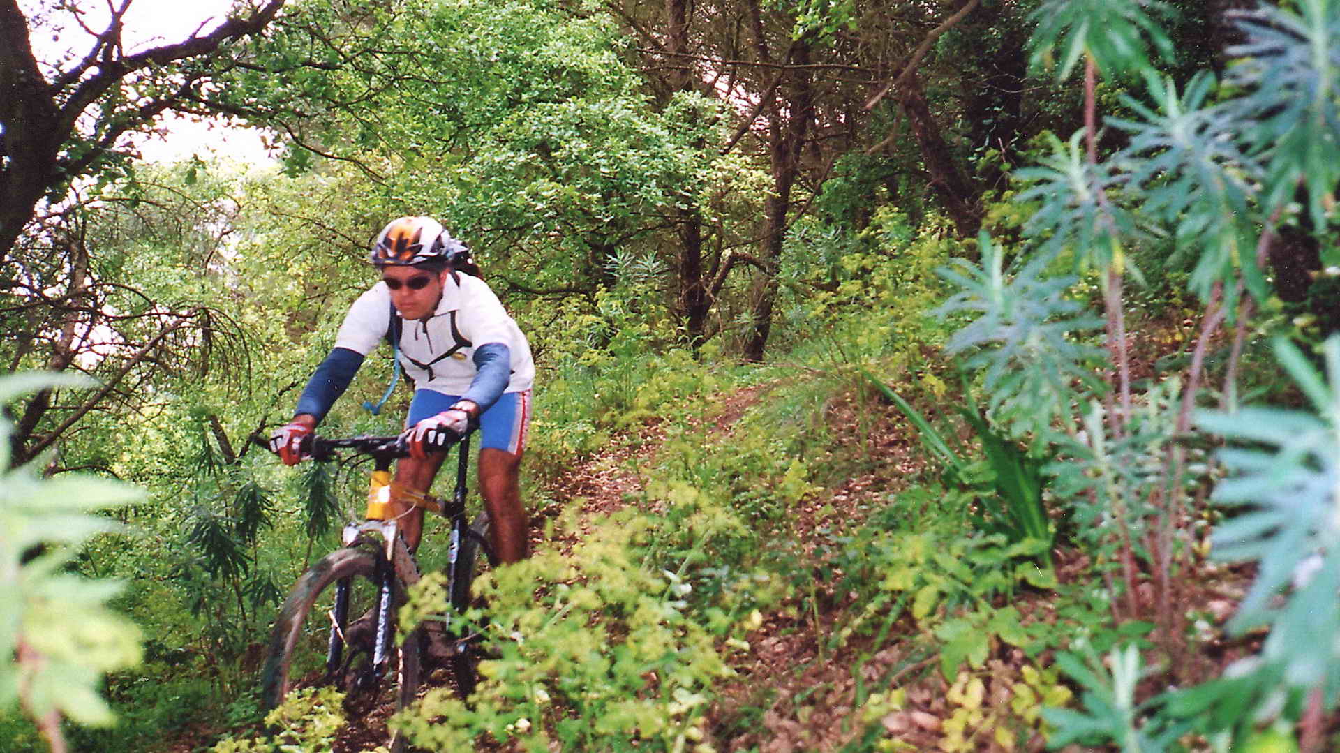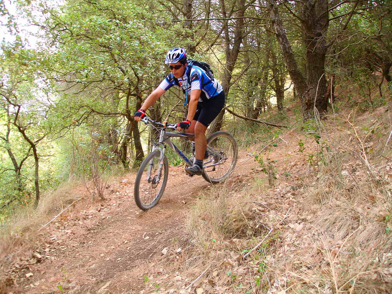 This Mountain Bike Tour takes place within a dense Mediterranean forest.