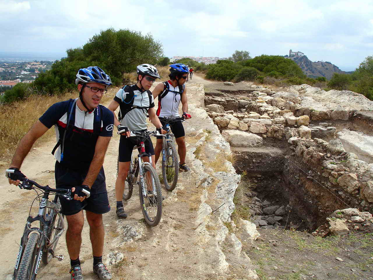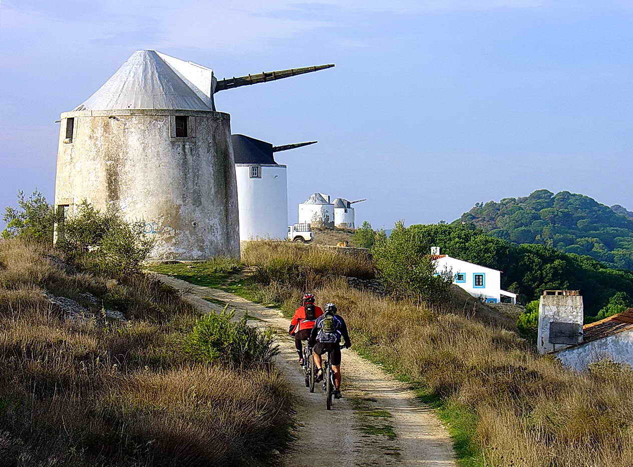 Starting this bike tour in Palmela on the top of the hill, we start riding down to the town center and then enter our first trail which is known as “the trail of the windmills”. This trail takes us to a succession of old windmills which in the old times were used to grind the flour to make bread for everybody in the village. We can also see some ruins in this trail, which indicate that in the past there were people living here.